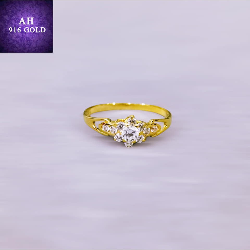 Emas 916 Cincin Tunang Permata Bunga Size 10 11 12 13 14 15 16 18 19 Merisik Kahwini Nikah Lazada